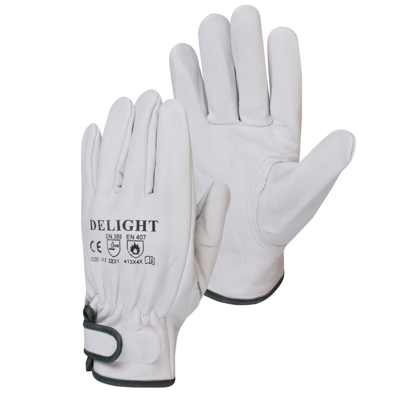 DELIGHT ถุงมือใช้งานทั่วไป ถุงมือหนังอาร์กอน ผลิตจากหนังผิวล้วน มียางรัดที่หลังมือ ความยาว 9 นิ้ว