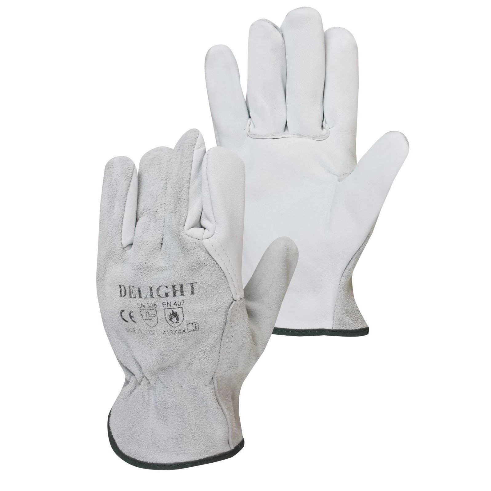 DELIGHT ถุงมือใช้งานทั่วไป ถุงมือหนังอาร์กอน หนังผิวหน้ามือ-หนังท้องหลังมืออย่างดี มียางรัดที่หลังมือ ความยาว 9 นิ้ว