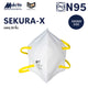 คุณภาพ N95 สวมครอบปิดตั้งแต่จมูกและปากจนถึงคาง สามารถกระชับกับรูปหน้าของแต่ละคนได้ มีแถบอลูมิเนียมอยู่ด้านบนสามารถดัดให้หน้ากากโค้งกระชับและแนบสนิทกับดั้งจมูก